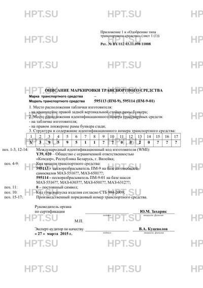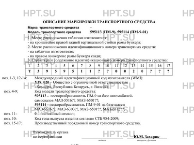 | Коммерческое наименование | Автомобиль грузовой специальный (пескоразбрасыватель); -; 595113 (ПМ-9), 595114… |
