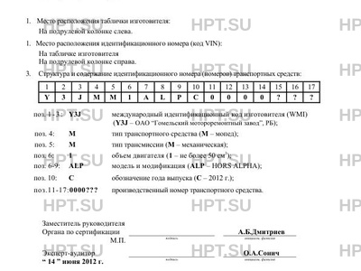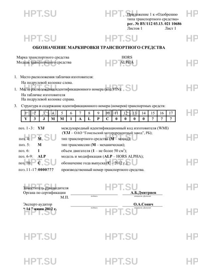 | Код VIN | Y3JMM1ALPC0000??? |
