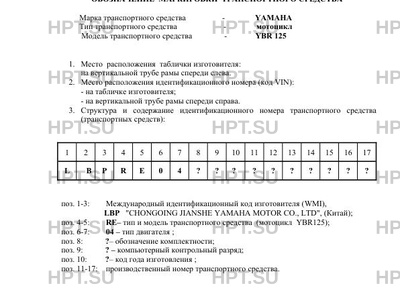 | Коммерческое наименование | мотоцикл; -; YBR125 |
