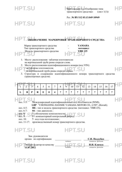 | Тип ТС | YBR125 |