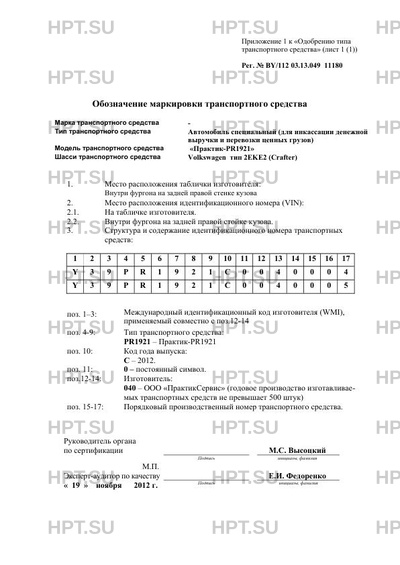| Коммерческое наименование | Автомобиль специальный (для инкассации денежной выручки и перевозки ценных грузов); -; «Практик-PR1921» |