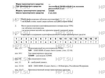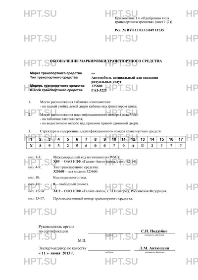 | Тип ТС | Автомобиль специальный для оказания ритуальных услуг |