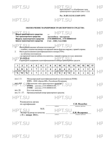 | Тип ТС | 2735-0000010-01 2735-0000010-03 |