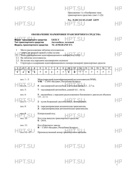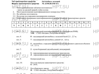 | Коммерческое наименование | Автомобиль легковой; -; NL (EMGRAND X7) |