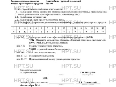 | Код VIN | Y3К750100???????? |