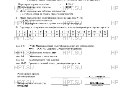 | Код VIN | X9W2158?????????? |