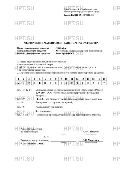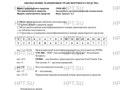 | Коммерческое наименование | Автомобиль грузопассажирский специальный; -; Форд Транзит АЛ |