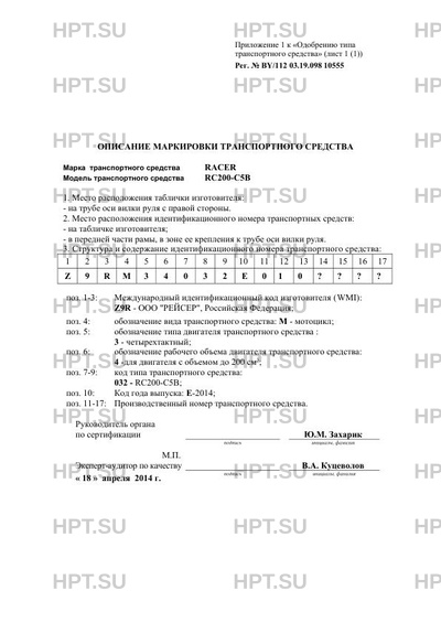 | Коммерческое наименование | Мотоцикл; -; RC200-C5В |
