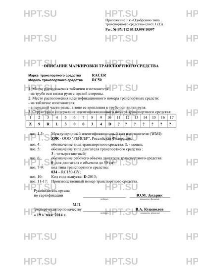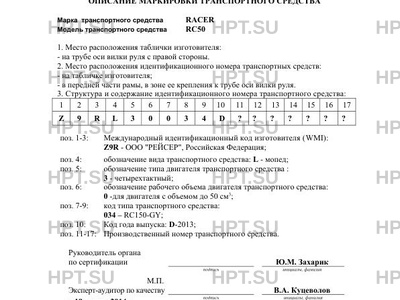 | Коммерческое наименование | Мотоцикл; -; RC50 |