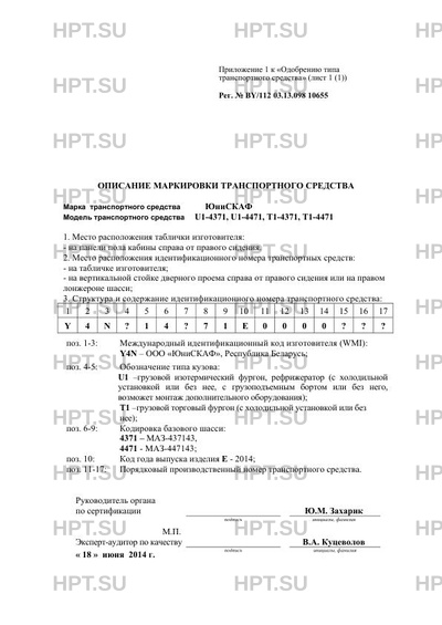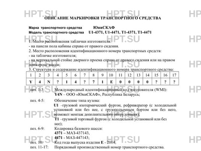 | Коммерческое наименование | Автомобиль специальный (фургон); -; U1-4371, U1-4471, Т1-4371, T1-4471 |