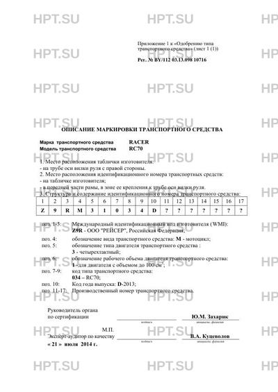 | Коммерческое наименование | Мотоцикл; -; RC70 |