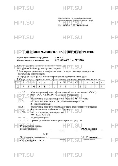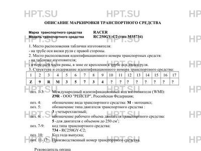 | Коммерческое наименование | Мотоцикл; -; RC250GY-C2 (тип M35734) |
