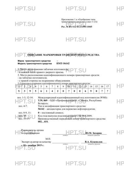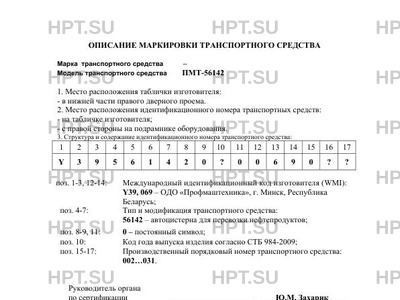 | Коммерческое наименование | Автомобиль грузовой специальный (автоцистерна для перевозки нефтепродуктов); -; ПМТ-56142 |