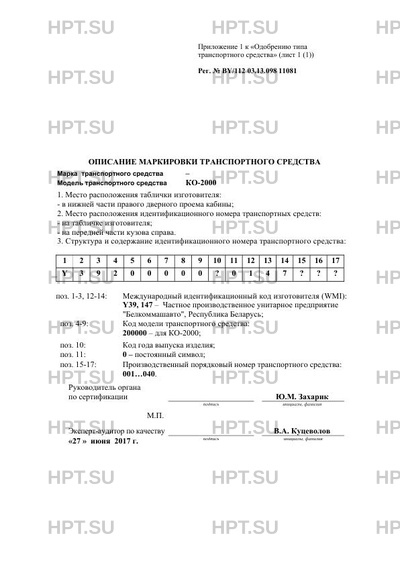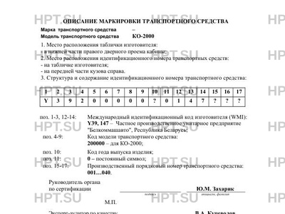 | Коммерческое наименование | Автомобиль грузовой специальный (мусоровоз контейнерный); -; КО-2000 |