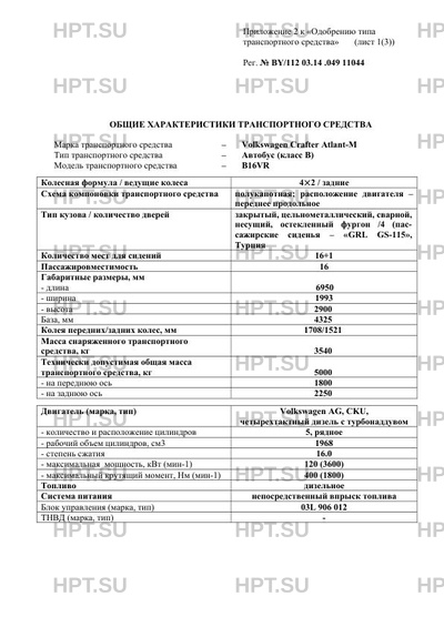 | Коммерческое наименование | Автобус (класс В); -; В16VR |