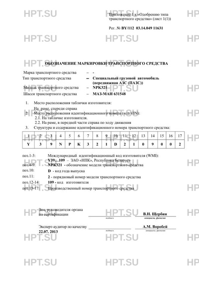 | Количество единиц | единичное изделие; код VIN: Y39NPK321D2109002 |