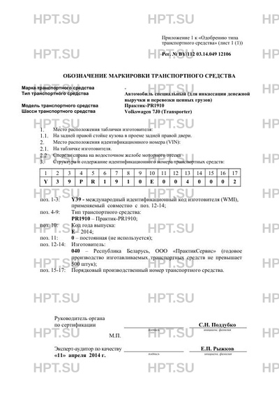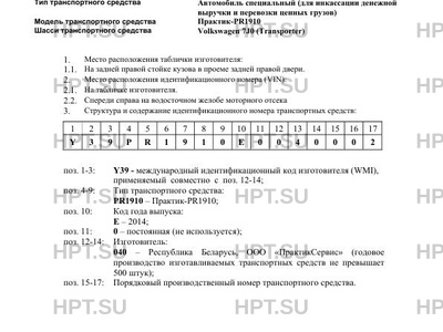 | Количество единиц | единичное изделие; код VIN: Y39PR1910E0040002 |