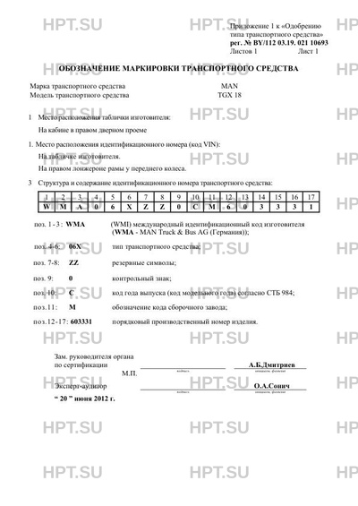 | Количество единиц | единичное изделие; с идентификационным номером WMA06XZZ0СM603331 |