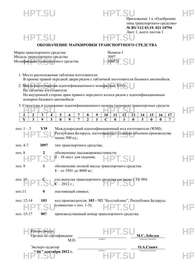 | Код VIN | Y39309721С0103002, Y39309721С0103003 |