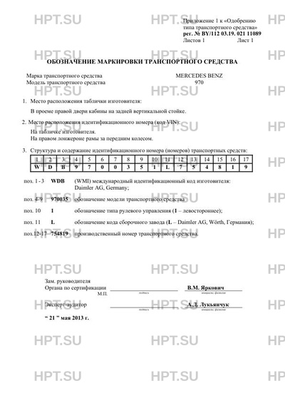 | Количество единиц | единичное изделие; с идентификационным номером WDB9700351L754819 |
