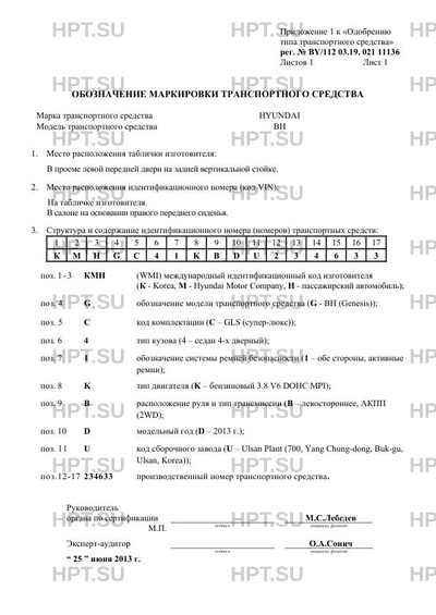 | Количество единиц | единичное изделие; с идентификационным номером KMHGC41KBDU234633 |