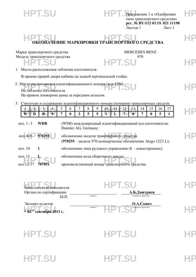 | Коммерческое наименование | 970 Atego 1223 L |