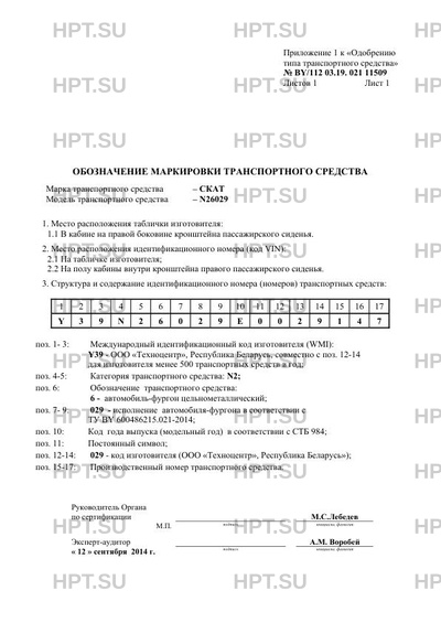 | Количество единиц | единичное изделие; код VIN: Y39N26029E0029147 |