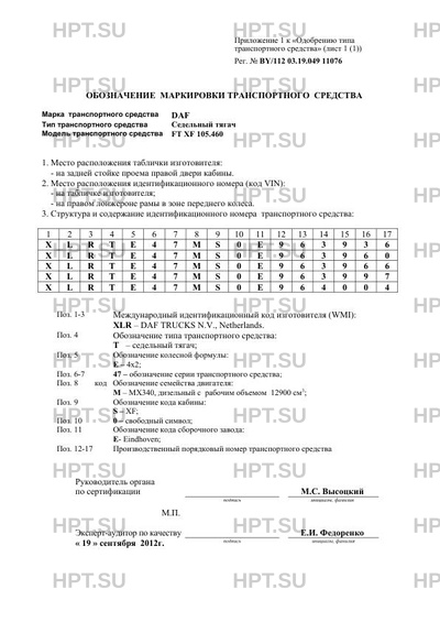 | Коммерческое наименование | Cедельный тягач; -; FT XF 105.460 |