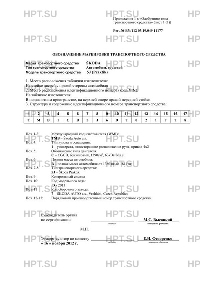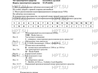 | Количество единиц | единичное изделие; код VIN: TMB1СB5J6D7021778 |