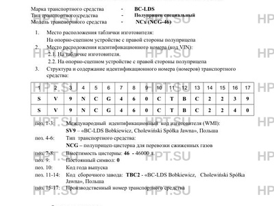 | Коммерческое наименование | Полуприцеп специальный; -; NCx(NCG-46) |