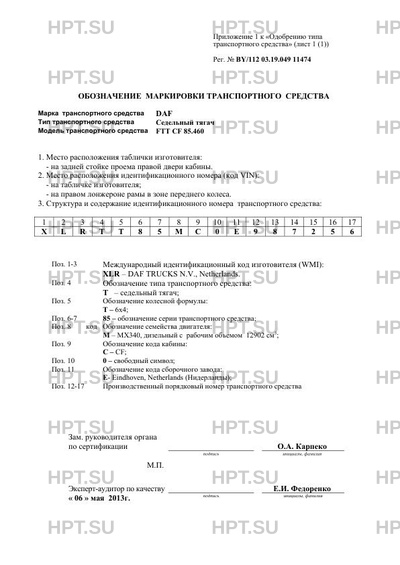 | Коммерческое наименование | Седельный тягач; -; FTT CF 85.460 |