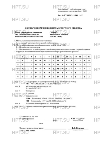 | Коммерческое наименование | Автомобиль легковой; ---; D (C-ELYSEE) |