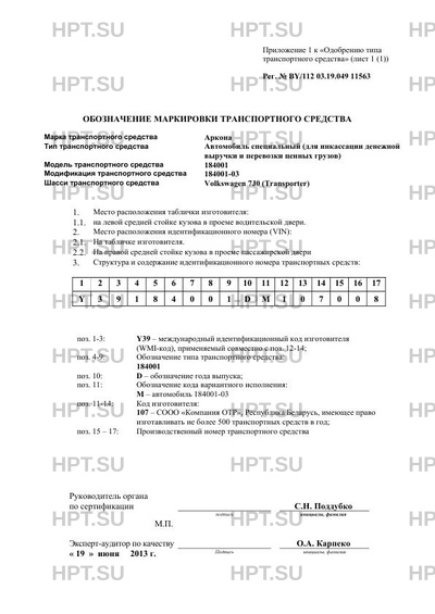 | Базовое ТС / Шасси | Volkswagen 7J0 (Transporter) 184001-03 Volkswagen 7J0 (Transporter) |