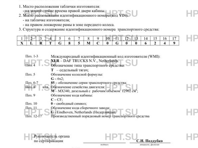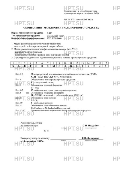 | Коммерческое наименование | Седельный тягач; -; FTG CF 85.460 |