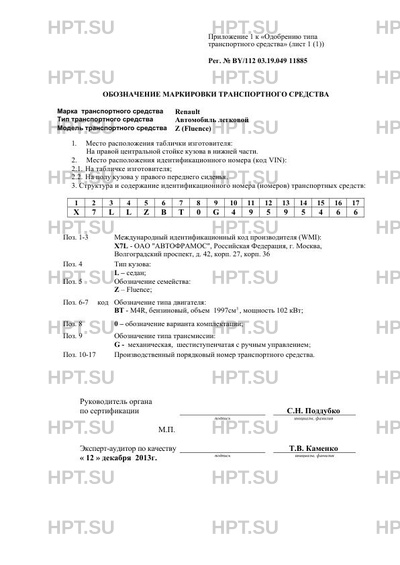 | Коммерческое наименование | Автомобиль легковой; -; Z (Fluence) |