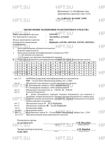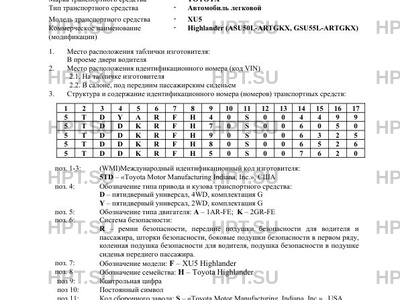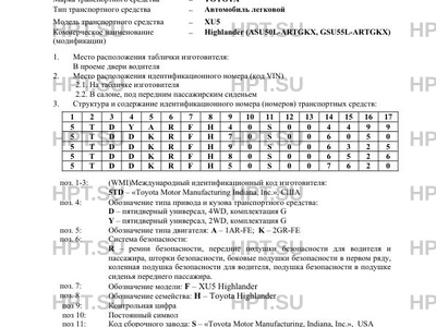 | Коммерческое наименование | XU5 (модификации) - Highlander (ASU50L-ARTGKX, GSU55L-ARTGKX) |
