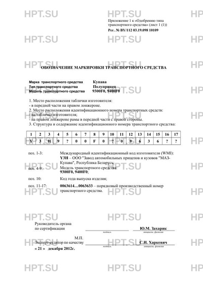 | Количество единиц | партия; 20 шт. (коды VIN Y3H9300F0С0063614 ... Y3H9?00F0?0063633) |