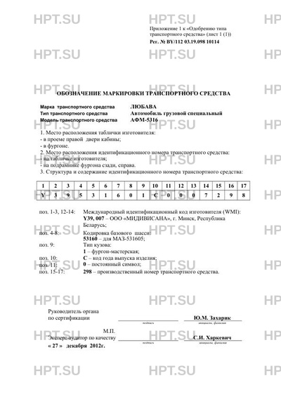 | Базовое ТС / Шасси | базового транспортного средства МАЗ-531605 |