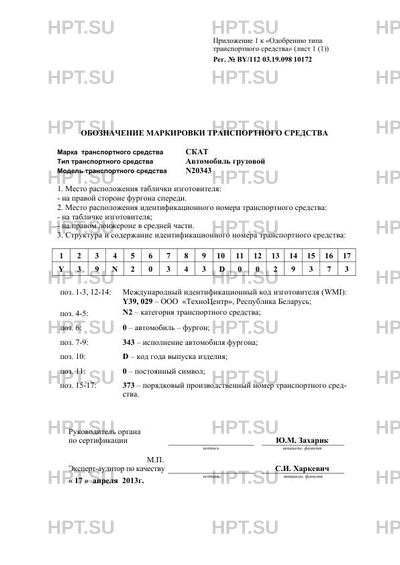 | Количество единиц | единичное изделие; код VIN Y39N20343D0029373 |