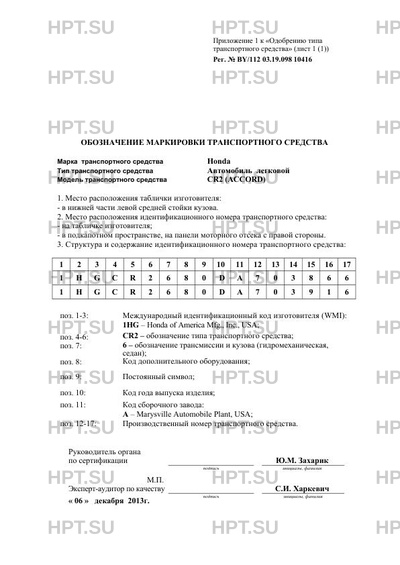 | Количество единиц | партия; 2 шт. (коды VIN 1HGCR2680DA703866, 1HGCR2680DA703916) |