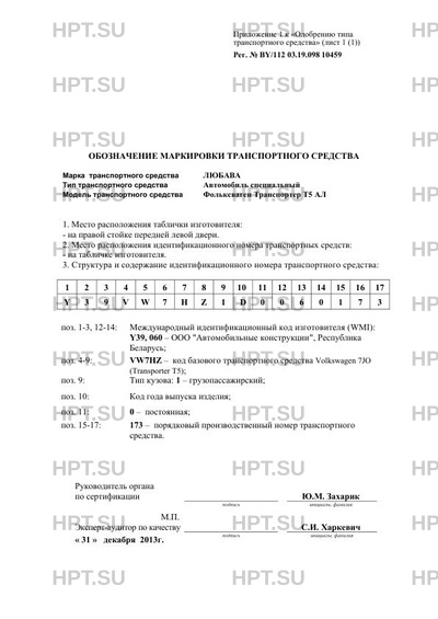 | Тип ТС | Фольксваген Транспортер Т5 АЛ |