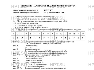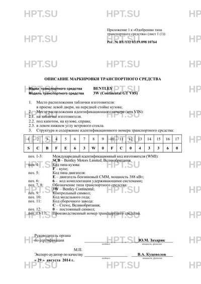 | Коммерческое наименование | Автомобиль легковой; -; Continental GT V8 S, тип 3W |