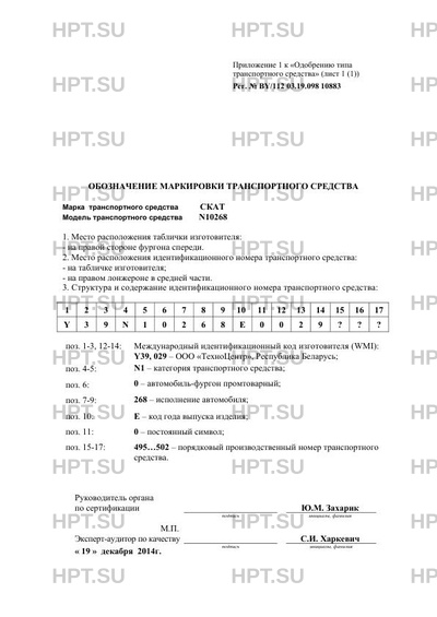 | Количество единиц | партия; 8 шт. (коды VIN с Y39N10268Е0029495 по Y39N10268Е0029502) |