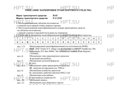 | Коммерческое наименование | Автомобиль грузовой (фургон); -; FA СF65 |