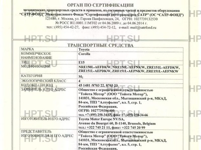 | Заявитель | Общество с ограниченной ответственностью "Тойота Мотор" (ООО "Тойота Мотор»), 141031, Московская обл, Мытищинский р-н, МКАД» 84-км, ТПЗ "Алтуфьево11, вл. 5, стр. 1, Российская Федерация, ОГРН: 1027739386400 тел* +7 (495) 258-34-65, факс +7 (495) 258-34-66 |
