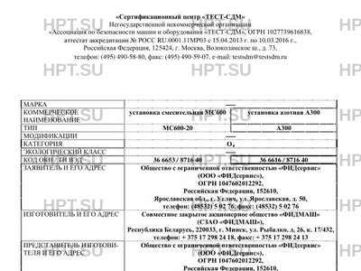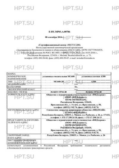 | Коммерческое наименование | установка смесительная МС600 установка азотная А300 |