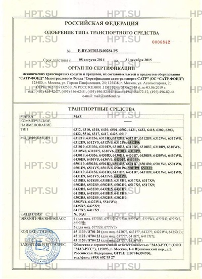 | Представитель изготовителя | Общество с ограниченной ответственностью «МАЗ-РУС» (ООО «МАЗ-РУС»), 115093, г. Москва, 1-й Щипковский пер., д.5, Российская Федерация, ОГРН: 1107746394700 |