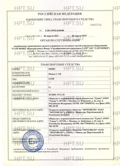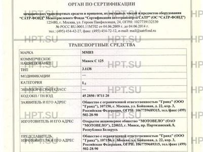 | Коммерческое наименование | МинскС 125. Тип ТС: 3.1138 |