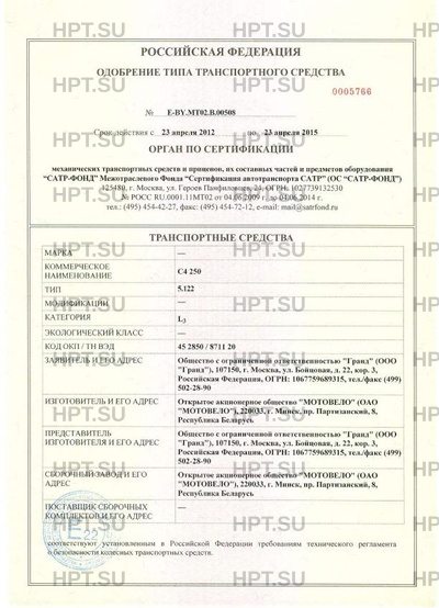 | Тип ТС | С4 250 |