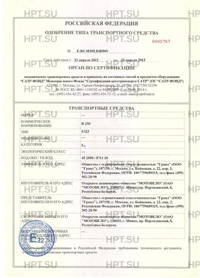| Номер документа | ТС RU E-BY.МТ02.В.00509. |